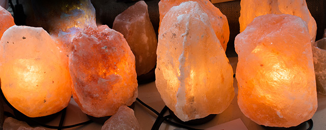 The lamps are sold in two forms: either as a solid piece of salt that has been carved out in the middle to make room for a light bulb or as a group of smaller rocks displayed in a decorative basket with a light shining from underneath. They are very pretty and shed a warm glow of pinkish-orange light. Himalayan salt lamps are made from pure Himalayan salt crystals from Pakistan.