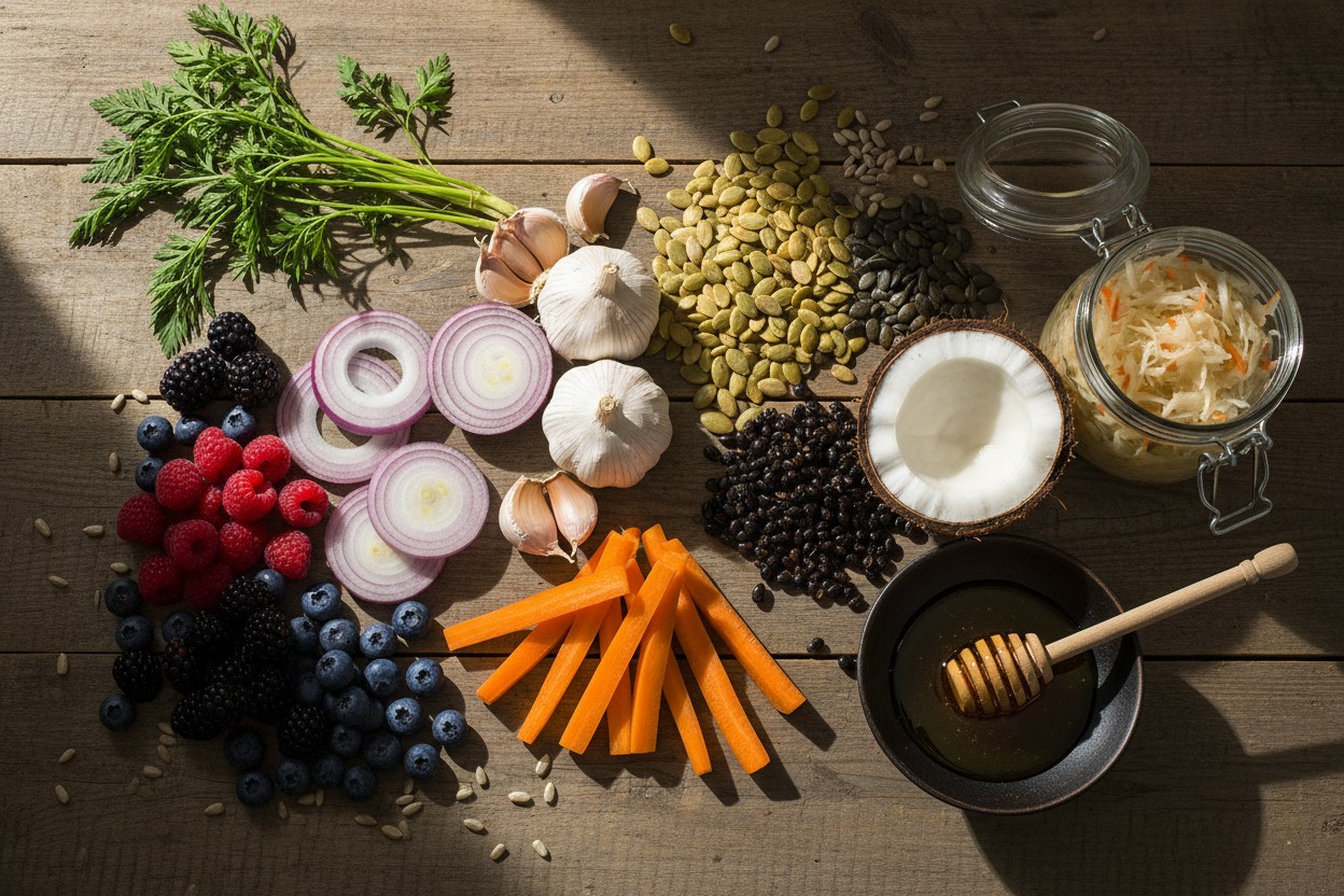 5 Powerful Immune Boosters: Carrots, Seeds, Ferments, Berries and Raw Honey