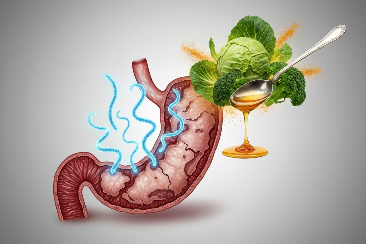 [1]. Cruciferous vegetables like cauliflower, cabbage, and broccoli are cited for naturally combating H. pylori
